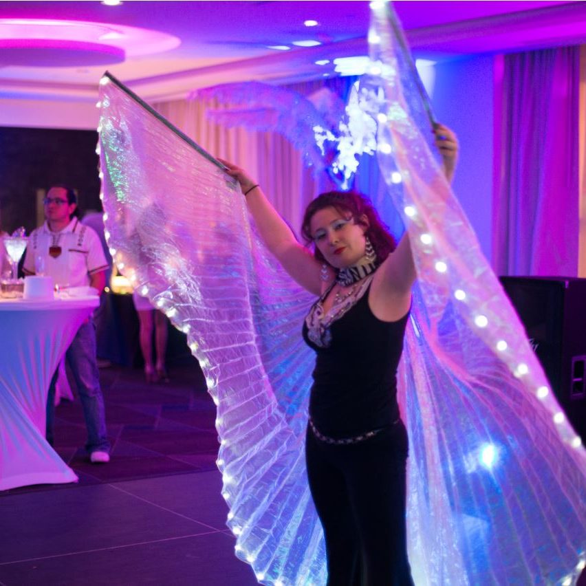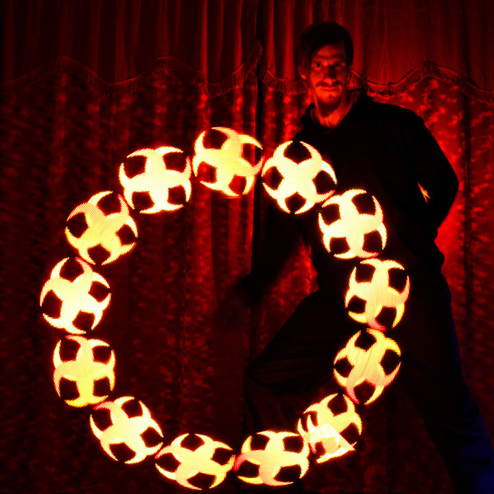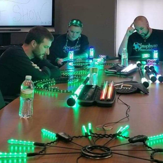 Light Shows are the illusion of lights and colors in flow arts type dance. Spinning and flowing in unison with the music, theme, and with each other. All of our LED props/equipment is state of the art!